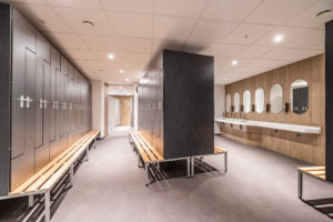 - Deux espaces vestiaires avec douches individuelles et casiers-vestiaires.